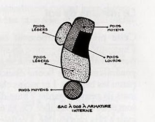 Il est important de placer le matériel lourd près du corps pour garder votre centre de gravité stable. Le poids moyen doit être placé sur le dessus et dans le fond du sac. Le léger va être placé dans le milieu et vers la partie la plus éloigée du corps.