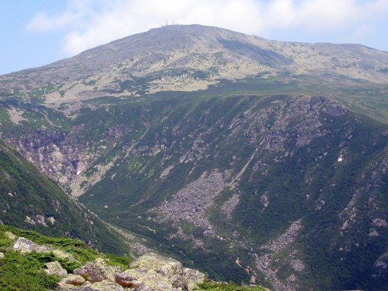 Un mont qui porte bien son nom: Isolation, loin des autres de la Presidential, beaucoup de kilométrages pour un seul, mais bon…pas le choix!!! 8h00 nous partons de  Pinkham Notch par la Boott Spur Trail. Suite à une montée soutenue de 5 km pendant 2 heures sous une chaleur infernale et dans les blocs de roches,  mais qui en vaut la peine, un sentier qui nous dirige au-dessus de la ligne des arbres. Un décor enchanteur avec en prime une vue sur le majestueux Mont Washington, la plupart de randonneurs rencontrés s’en vont fouler le maître des White Mountains.