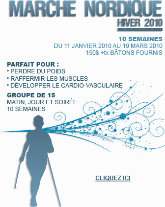 Inspirée du ski de fond, la marche nordique est plus qu’un simple entraînement en plein air, c’est un véritable mode de vie. L’objectif : avoir une vie active et en santé tout en tonifiant nos muscles, en augmentant notre endurance cardio-vasculaire et en perdant du poids. De plus, il s’agit d’un excellent moyen pour faire de nouvelles rencontres.
