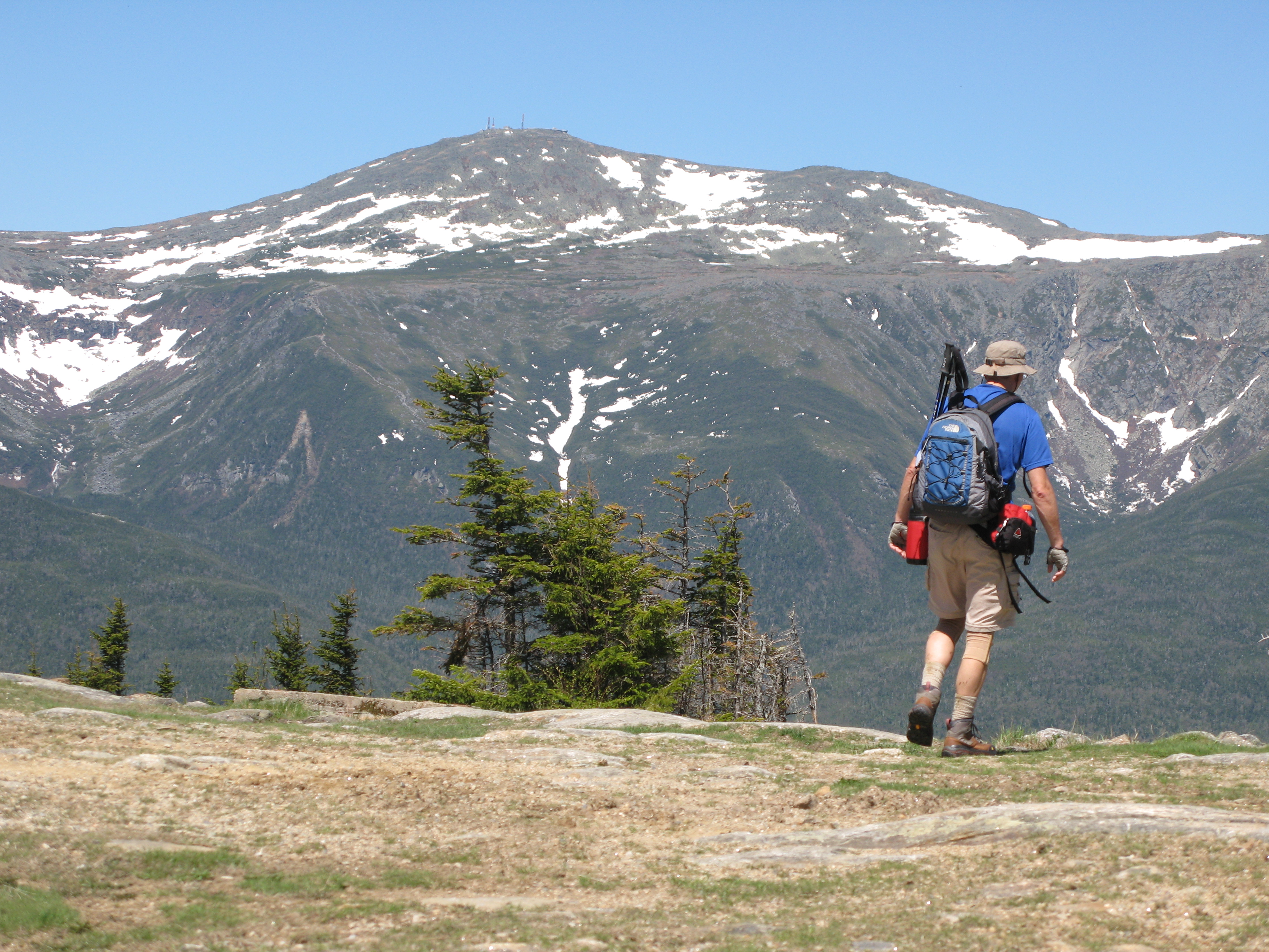 Le lendemain matin 4h00 nous étions debout pour se préparer à cette journée dans la pluie, nous partons vers les 6h00 sous une fine pluie qui nous accompagna pendant 4 km, soit jusqu’au camping la fougère. Par la suite la brume est présente tout au long de la montée du Albert avec en prime une attaque de maringouins à n’en plus finir, impossible de prendre des pauses sauf pour les photos. C’est en descendant dans la cuve que le tout s’est dégagé à notre plus grand plaisir. Le paysage était féerique dans un environnement où la roche rouge se confondait avec la neige et les fleurs mauves. Nous avons encore croisé Tara et Mickael dans les grosses roches de serpentine qui font la renommée de la cuve. Le rythme était bon malgré un terrain difficile. Nous avons donc pris une bonne pause à la serpentine (halte de repos). Après le repos le terrain devenait facile pour monsieur et madame tout le monde. C’est à 13h00, après 7 heures de randonnée que nous avons rejoint le refuge du Geai Gris au camping du mont Albert. Une bonne douche chaude nous attendait au camping et un bon dîner en compagnie de Tara et Mikael, de plus, nous avions donné rendez-vous à Michel et Gaétan au bistro du piedmont pour le souper. Ces deux derniers se sont pointés vers les 17 heures. Un bon souper et ensuite nous sommes rendus au refuge pour se coucher, nous en avons profité pour s’alléger un peu pour le reste de l’expédition dans les McGerrigles.