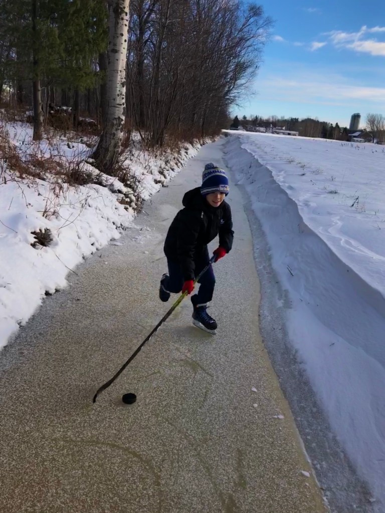Cette année j’ai construit une patinoire extérieure derrière la maison. Ce fut pas une mince tâche; poser les bandes, le système d’éclairage, une polythène, arroser,  puis encore et encore jusqu’à la bonne épaisseur et enfin la pelleter après les tempêtes de neige… c’est un travail de longue haleine qui demande de la patience et de la disponibilité. Je crois que le ratio travail/patin est de 5/1. Mais, l’important ce sont les enfants et aussi les grands qui s’amusent. Malgré un hiver relativement doux, je peux conclure que l’an prochain l’expérience sera répétée. En espérant une meilleure saison!