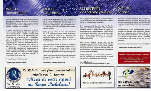 Depuis quelques temps je collabore en tant que choniqueur Santé à une publcation régionale qui s’intitule La Maison de Jeunes de Montmagny vous parle…La première publication a été imprimé au mois de mai dernier. La maison des jeunes en profitait pour lancer un concours pour trouver un nouveau nom (l’ancien était le trotteur) et un nouveau logo. La première parution parlait des Alliés Pee-Wee la meilleure au Québec, du mot des anciens, et des divers collaborateurs à la maison des jeunes et ma chronique sur les bienfaits de l’activité physique.