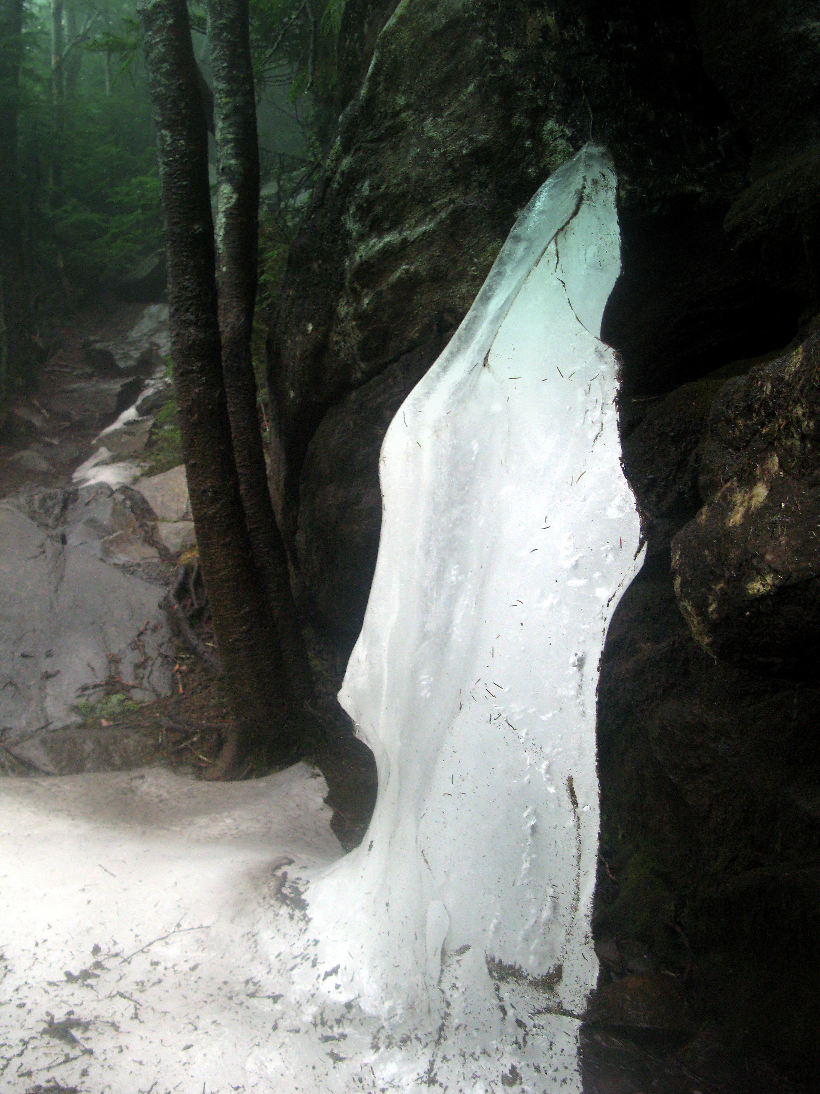 Sur la crête, c’est la Davis Path qui nous mènera vers l’Isolation et du même coup je me rends compte que l’eau baisse à vue d’œil dans mes gourdes. Nous rencontrons un homme avec son fils, qui a déjà les 67 monts de la 4000 footers de la New England en poche, nous lui demandons s’il se rappellent qu’il y a des ruisseaux vers l’Isolation. Il me répond : Je ne le sais pas, mais ouvre mon sac et prends-toi de l’eau. Un gentlemen qui s’en allait pour la 25e fois sur le Washington…pourquoi? parce que c’est le plus beau!!! Il a tant raison. Effectivement de l’eau vers l’Isolation il y en a pas. J’ai dû la rationner tout la journée. Après 5,3 km nous avons foulé le sommet sous une chaleur accablante de 35 °C. À ma grande surprise la vue y est magnifique, on peut apercevoir le Washington, le Monroe, le Pierce, le Jackson, l’Eisenhower et au sud les Wildcats. Nous mangeons rapidement pour mieux revenir vers une source d’eau, peut-être plus bas…Nous revenons par la Davis Path pour faire un crochet sur la Glen Boulder Trail qui descend jusqu’à Pinkham Notch. À l’intersection des deux sentiers j’ai bu ma dernière gorgée d’eau en me disant : à la grâce de Dieu!!! En fait la chaleur et le soleil qui me plombait sur la tête. Sur la crête le processus de déshydratation se fait en accéléré. La Glen Boulder descend énormément et toujours pas de cours d’eau pour me soulager. Je peux vous affirmer qu’en 4 heures j’ai bu 100 ml d’eau et dans les 2 dernières aucune goutte…À force de descendre on commence à entendre un faible bruit d’un supposé ruisseau, on avance, on l’entend mais il est loin. Plus on s’en approche, plus le son est fort et le moral reprend vie. À l’arrivée il n’était pas question de filtrer, nous avons bu directement dedans, la température du corps a chuté pour la peine, cela a fait un bien inestimable, il est 17h00 et on en marre…Aujourd’hui nous avons parcouru 18,5 km. Je peux affirmer que c’est la canicule dans les White Mountains!!!