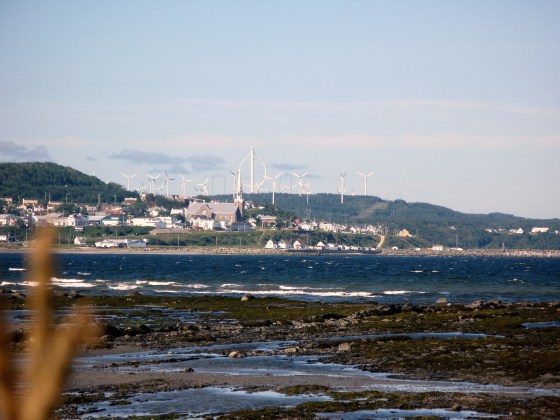 Sujet: village de Cap Chat et ses éoliennes, vue du camping municipal.
