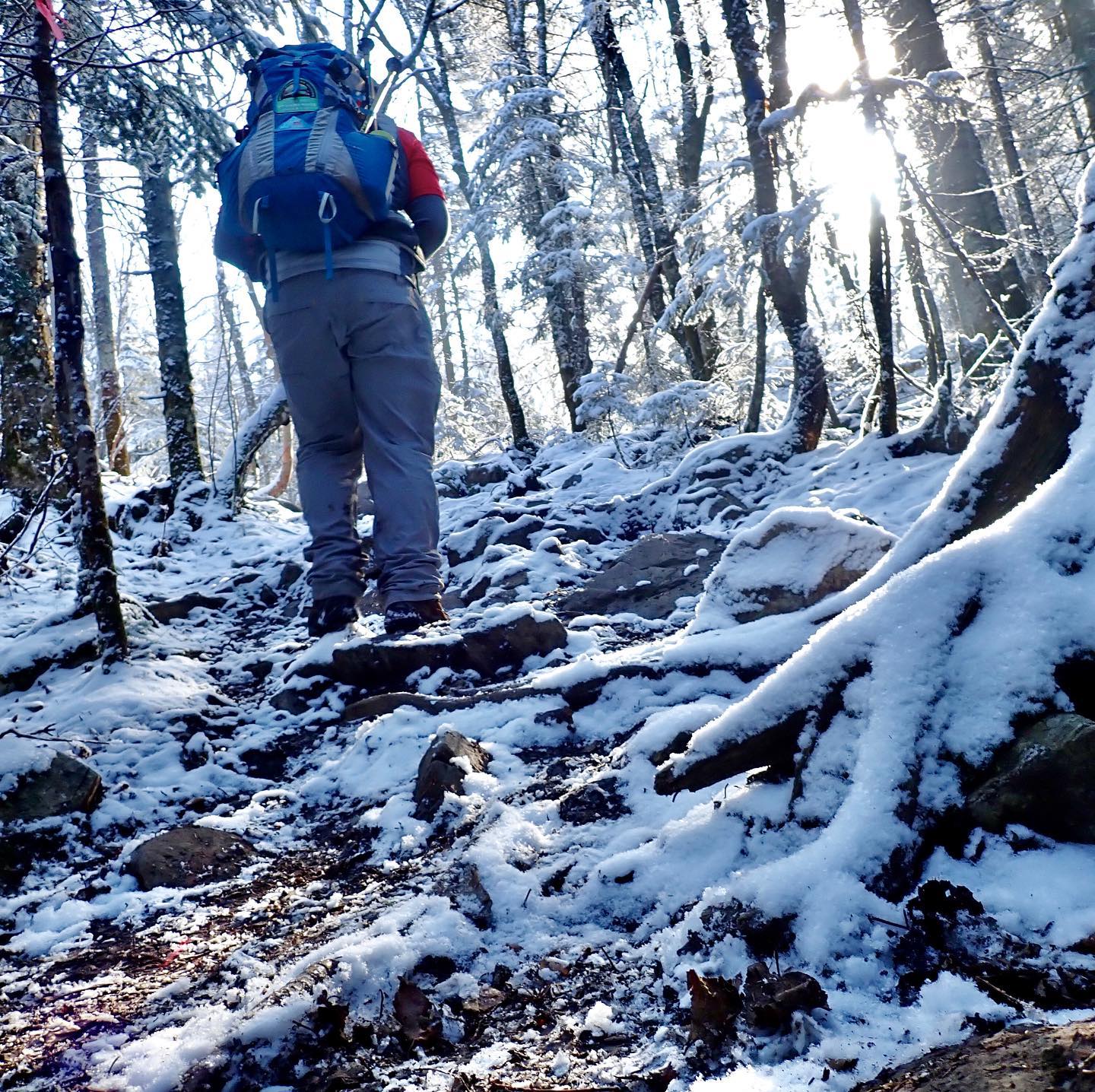 Samedi dernier je me suis rendu dans notre cour arrière, soit au Parc régional des Appalaches, plus précisément au mont Sugar Loaf. Ce sommet que j’ai foulé à plusieurs reprises, je me rappelle de la première fois en raquette. On avait emprunté le sentier par une cour arrière d’une résidence privée dans le 6e rang ouest, adjacent à la route des chutes. À travers les tubulures de l’érablière et dans la poudreuse à la taille; cette montagne m’avait marquée. Une vue imprenable tout près de chez moi! Je m’étais dit à ce moment que j’y reviendrais un jour! Après près plus de vingt visites; seul, en famille, avec mes amis, mes élèves, en hiver, au printemps, en été et en automne. J’ai savouré chaque visite et son goût est toujours aussi rafraîchissant fois après fois…Une expérience unique pour tous mes sens!