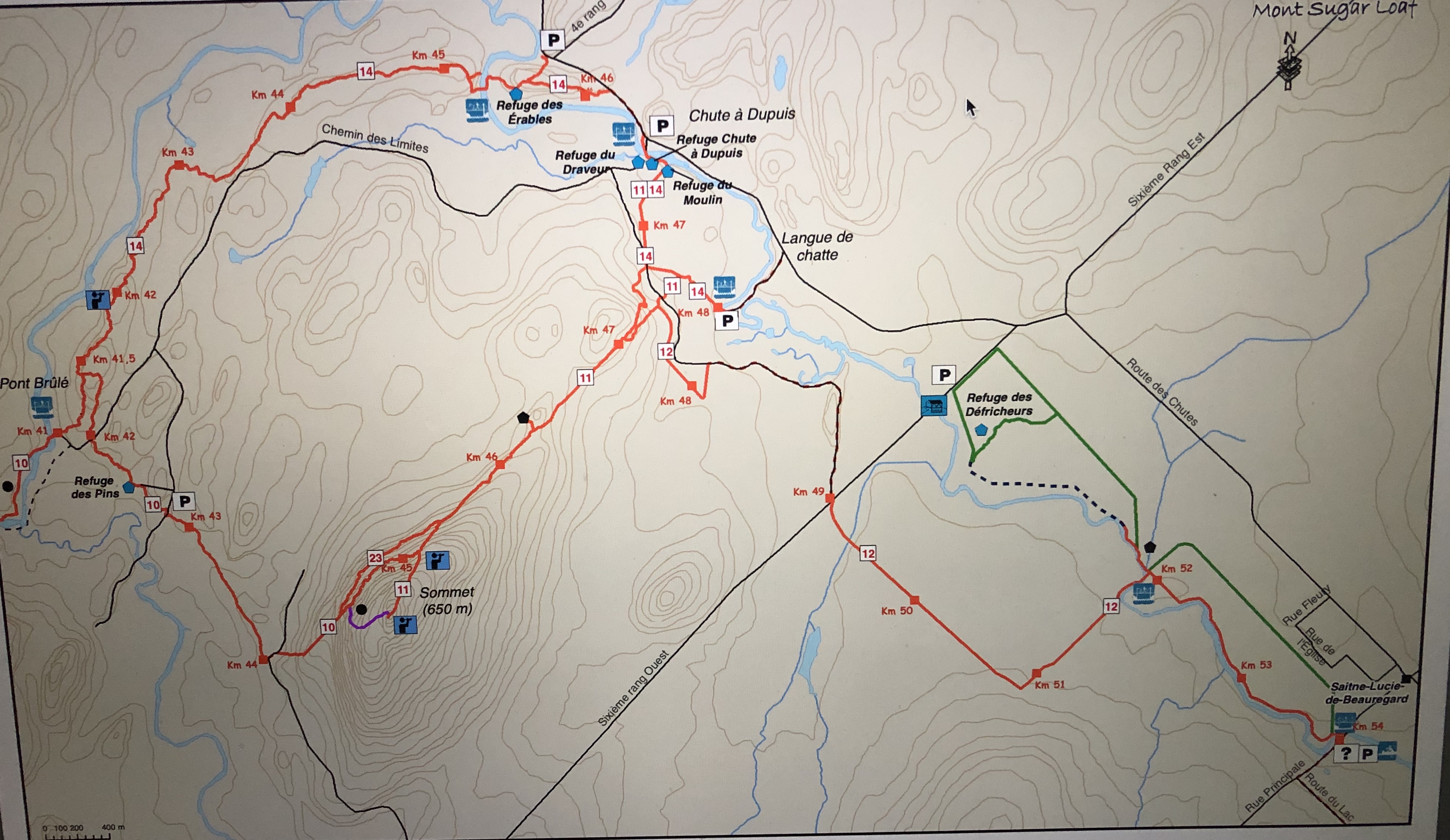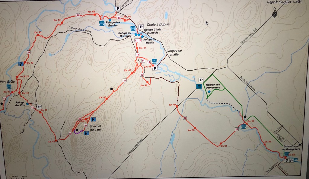 Comme je voulais faire la boucle de 13 km, je suis revenu par le sentier #10 du pont du Brûlé et ensuite emprunté le #14 des castors. Une belle marche d’environ 4 heures à bon rythme, tout en prenant le temps de prendre quelques clichés car la luminosité était au rendez-vous pour se prêter à cet exercice. La difficulté du sentier est considéré comme intermédiaire, le sentier est escarpé dans les derniers mètres avant d’atteindre le sommet. Le retour est plutôt plat avec quelques petits valons. Mais bien plaisant à faire.