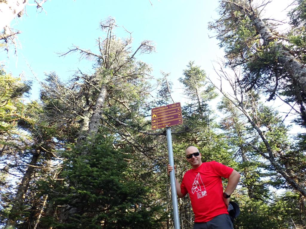 Dans un premier élan j’ai gravi le mont St-Joseph, sommet qui culmine à plus de 1 050 mètres. Départ du stationnement du secteur de l’observatoire (Notre-Dame-des-Bois), une belle montée où il y avait foule, et ce, jusqu’au sommet. Le parcours offre plusieurs points de vues intéressants et le sommet est très beau surplombant la région avoisinante. Après le dîner je me suis dirigé vers le mont Victoria (1 065 m.), un sommet boisé qui n’a aucune vue, en échange il propose aucune difficulté à le grimper.